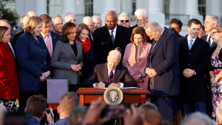 As Congress approved the Infrastructure Investment and Jobs Act two weeks ago, the Democratic majority expected the same dynamic to unfold once more: Republicans would, as House Speaker Nancy Pelosi put it, “vote no and take the dough.”
