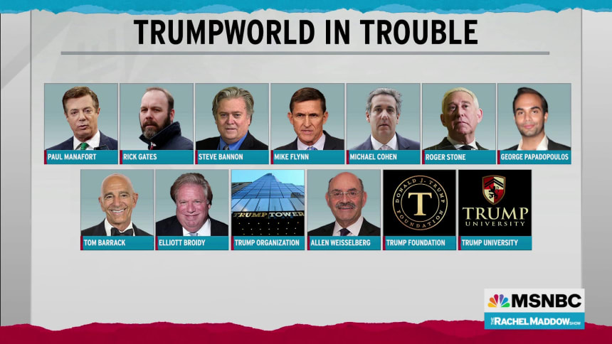 - Trump’s former campaign chairman, Paul Manafort, was charged, convicted, and sentenced to prison.