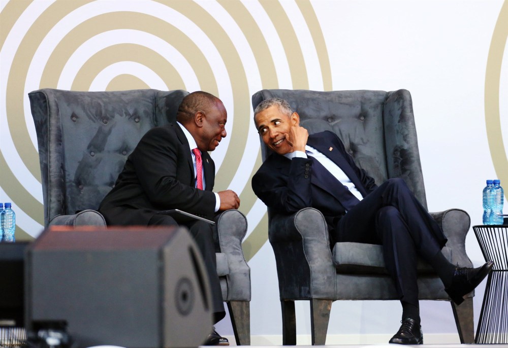 In remarks honoring the 100th anniversary of anti-apartheid leader Nelson Mandela’s birth, delivered in South Africa a day after President Donald Trump was roundly criticized for cozying up to Russian President Vladimir Putin, Obama denounced creeping authoritarianism and warned against “strongman politics” practiced by leaders who ignore facts and “seek to undermine every institution … that gives democracy meaning.”