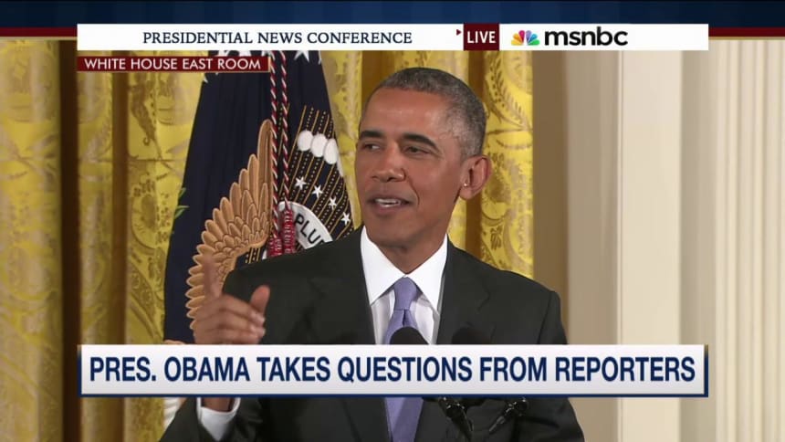 President Obama hosted a White House press conference this afternoon, the bulk of which dealt with the details of the international nuclear agreement with Iran. Reporters pressed Obama on several angles, and the president, to his credit, didn’t dodge anything — he offered detailed responses and defenses to every inquiry.