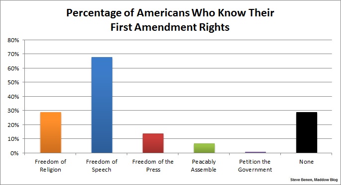 A painful 29% — nearly a third of the country — couldn’t identify any of the rights in the First Amendment.