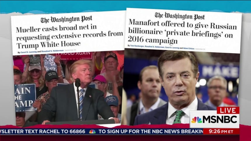 I’ve heard from a few readers who were struck by the on-screen visual Rachel featured, highlighting the areas of interest to Mueller and his team, based largely on the Post‘s reporting, so here’s your clip-and-save version: The special counsel has asked for: