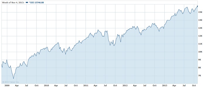 Sean Vitka took a closer look at why the Dow reached a record high — there really isn’t a good reason, aside from expectations that the Fed will extend quantitative easing in light of the recent government shutdown — but from time to time, I’m also reminded of the politics of this.