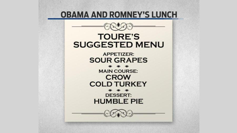 The president extended this lunch invite in his election night victory speech when he said he looked forward to sitting down with Romney to talk about how they can work together to move the country forward.