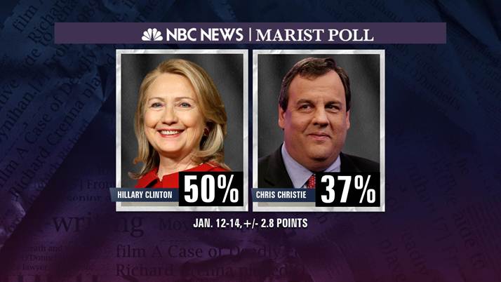 A new NBC News/Marist poll found that Christie lost ground to the former secretary of state in an early hypothetical presidential match-up, trailing her by 13 points, 50%-37%.