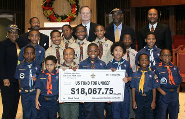 Lawrence O’Donnell traveled to Birmingham, Ala. this weekend to accept a donation to the K.I.N.D. fund from the Sixth Avenue Baptist Church’s Cub Scout pack #3415.These 14 cub scouts raised more than $18,000 for children in Malawi through bake sales, car washes and spaghetti dinners. Members of the congregation at Sixth Avenue Baptist also donated money to provide desks and scholarships for students in Malawi.Lawrence accepted the donation at the church’s Sunday service. You can see more about Lawrence’s visit on MSNBC’s The Last Word on Wednesday at 10pm ET.