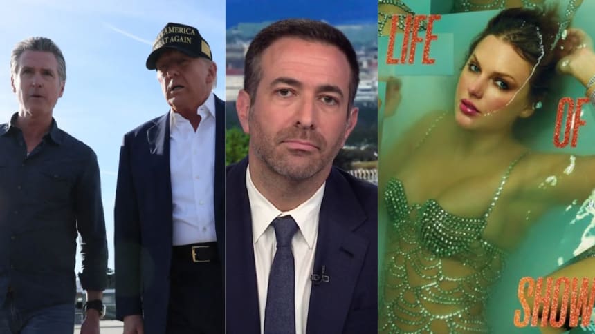 Melber said Newsom has become one of Trump’s fiercest critics, trolling the president at almost every turn. “There’s this kind of long-standing artistic trope that when you get to that level of hatred, it gets obsessive, and therein it can get a little romantic, even,” Melber said. “Now, we tend to turn to lyrics around here, and I got to tell you, there are new Taylor Swift lyrics that channel this point.”